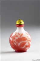 清 乾隆 玻璃套料花卉纹鼻烟壼 Glass overlay snuff bottle with floral design.