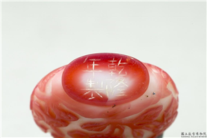 器物典藏-清 乾隆 玻璃套料花卉纹鼻烟壼 Glass overlay snuff bottle with floral design.