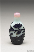 清 玻璃套料鼻烟壼 Glass overlay snuff bottle with birds and flowers design.