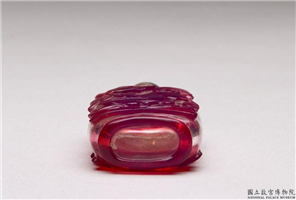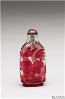 器物典藏-清 玻璃套料鼻烟壼 Glass overlay snuff bottle with suan-ni beast design.