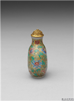 器物典藏-清 乾隆 玻璃胎画珐琅金地缠枝花卉鼻烟壶 Glass-body painted enamel snuff bottle with a scrolling floral design on a gold background, Qianlong reign (1735-1796), Qing dynasty