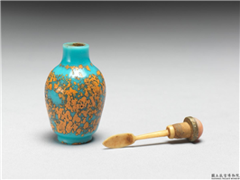 器物典藏-清 十八/十九世纪 天蓝色绞胎玻璃鼻烟壶 Sky-blue mottled glass snuff bottle, 18th-19th century, Qing dynasty